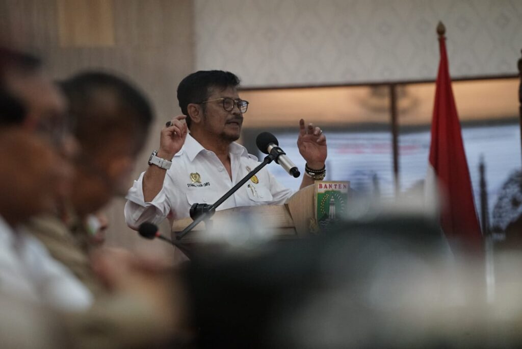 Serang- Menteri Pertanian Syahrul Yasin Limpo melakukan kunjungan kerja ke Provinsi Banten, Selasa, 18 Juli 2023. Di sana, Mentan melakukan rapat koordinasi bersama jajaran pemerintah Provinsi Banten membahas antisipasi dampak fenomena Elnino.
