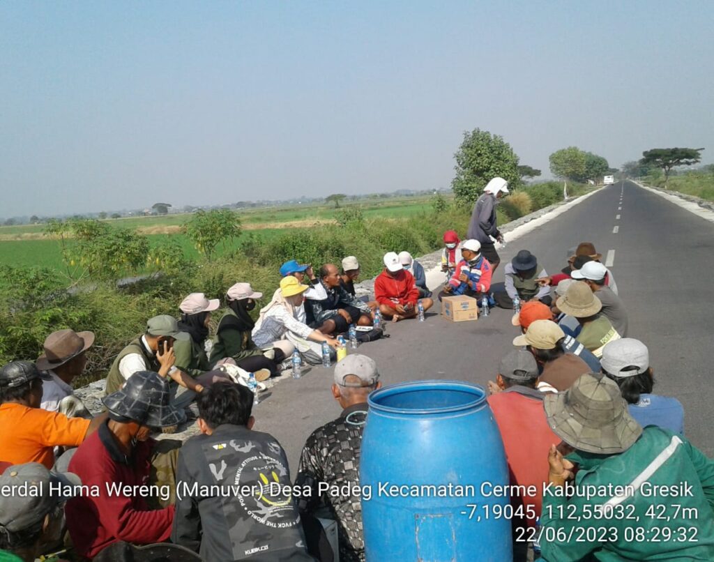 “Perlu diketahui ya, walaupun sudah melakukan gerakan pengendalian sampai saat ini tim pengamanan produksi masih tetap bergerak di lapangan, bukan hanya di wilayah Jawa Timur termasuk Jawa Tengah pun tak luput dari penyisiran tim kami, contohnya saja pada hari kemarin kami juga telah melakukan gerakan pengendalian di desa Keturen, Tegal Selatan kabupaten Tegal tepatnya di wilayah tanam Kelompok Tani Rukun Jaya 1, pokoknya tim kami selalu siaga penuh, ini adalah upaya kongkrit kami dalam membela petani”, tandas Yuris.